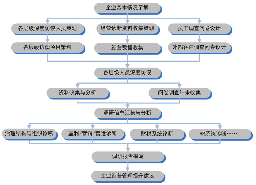伍略MK体育(国际)官方网站顾问将利用多年企业诊断经验构建起了针对不同行业不同规模企业的从经营管理各维度进行全面经营诊断的模型,通过对各层级的深度访谈、对外部客户内部员工的问卷调查、对企业当前的经营管理系统和经营数据实施分析,综合的进行企业经营诊断结果判断,拟出企业现阶段存在的主要问题以及问题产生的原因,并通过MK体育(国际)官方网站顾问专业角度和企业发展方向来提出实操性的解决对策。