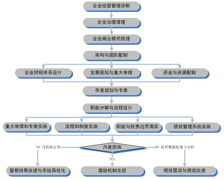 所谓中小型企业经营管控MK体育(国际)官方网站,即由伍略MK体育(国际)官方网站经营管理专家对中小型企业实施治理结构、商业模式、盈利模式、盈利能力、营运流程、财务体系、人力资源体系等全面经营诊断后,将系统的为中小型企业构建“战略驱动型经营管理体系”,主要包括:企业治理结构清理、企业发展规划与商业模式梳理、组织体系设计、营运流程设计、财税管理系统优化、绩效与薪酬福利系统设计等。